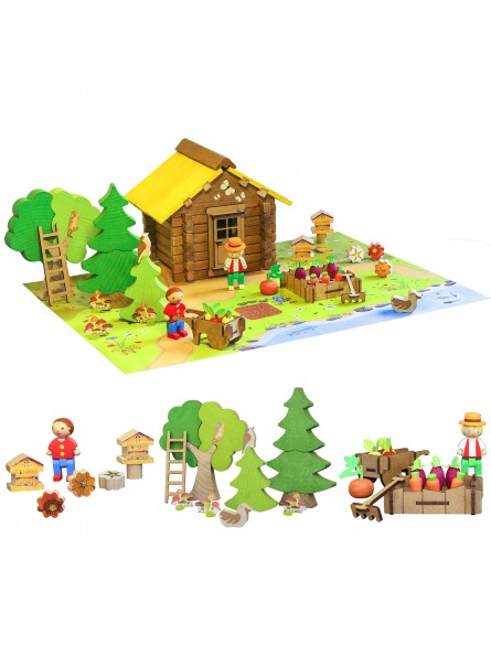 Jeu de construction en bois naturel et teinté avec de nombreux accessoires pour éveiller notre lien à la Nature et attiser notre curiosité. Avec une notice de montage, un tapis de jeu et un livret pédagogique "Petit guide Naturaliste" Deyrolle développant tous les thèmes mis en avant avec la construction : le potager, la forêt, la pollinisation