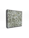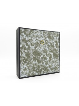 Ce modèle de 19x19x5 cm est fait d'un cadre en bois recouvert de papier noir mat, d'une vitre en verre et d'un fond en émalène noire pour pouvoir y piquer vos spécimens. Un anneau de laiton permettra de l'accrocher très simplement au mur.