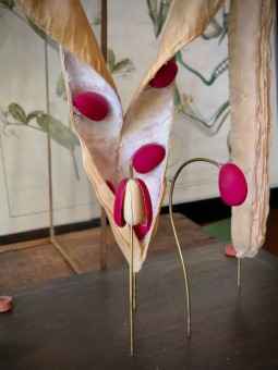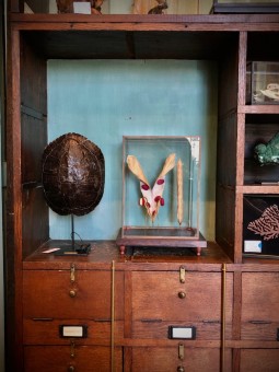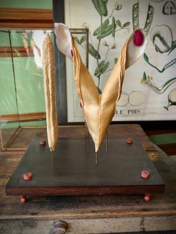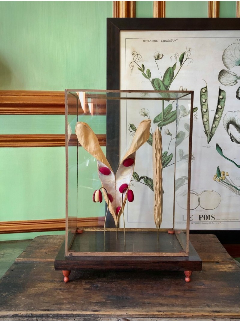 Présenté dans un écrin de bois et de verre, cette étude botanique n’est pas sans rappeler les élégantes planches que Deyrolle produisait dans les années 50 pour l’instruction publique et les passionnés de toute nature.