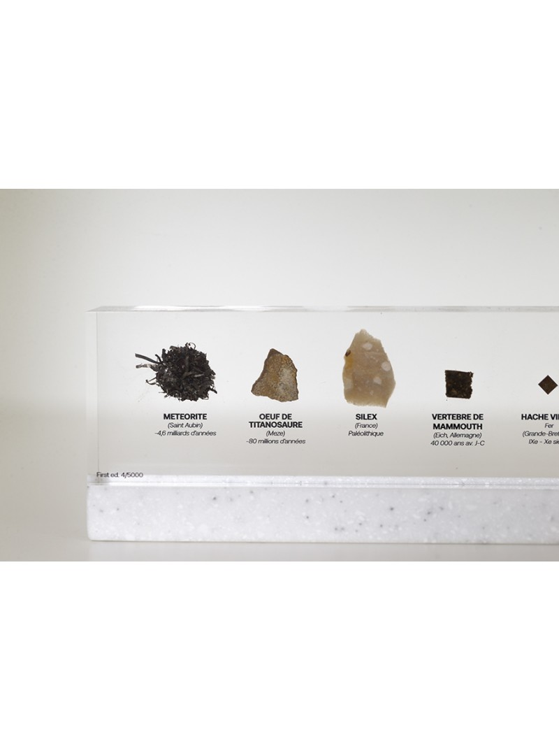 Tous sont emballés avec soin dans leur écrin, livrés avec un socle minéral et un livre de plus de 230 pages - en français et en anglais - qui détaille l’histoire de chacune des inclusions. Enfin, HistoryCube est un objet entièrement et fièrement conçu en France !