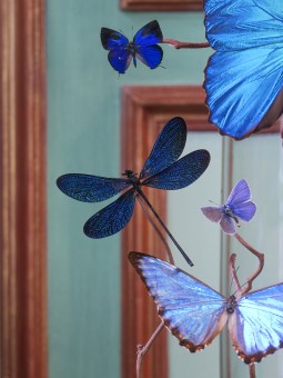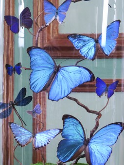 Œuvre onirique, l'Ange bleu est une délicate composition entomologique de l'artiste Jean-Luc Maniouloux. Morpho et libellules bleues s'y côtoient dans une belle verticalité sous un globe de verre Napoléon III. L'ensemble d'une grande douceur ne manque pas d'évoquer l'irréelle beauté et la fragilité d'une Nature que nous n'observons plus.