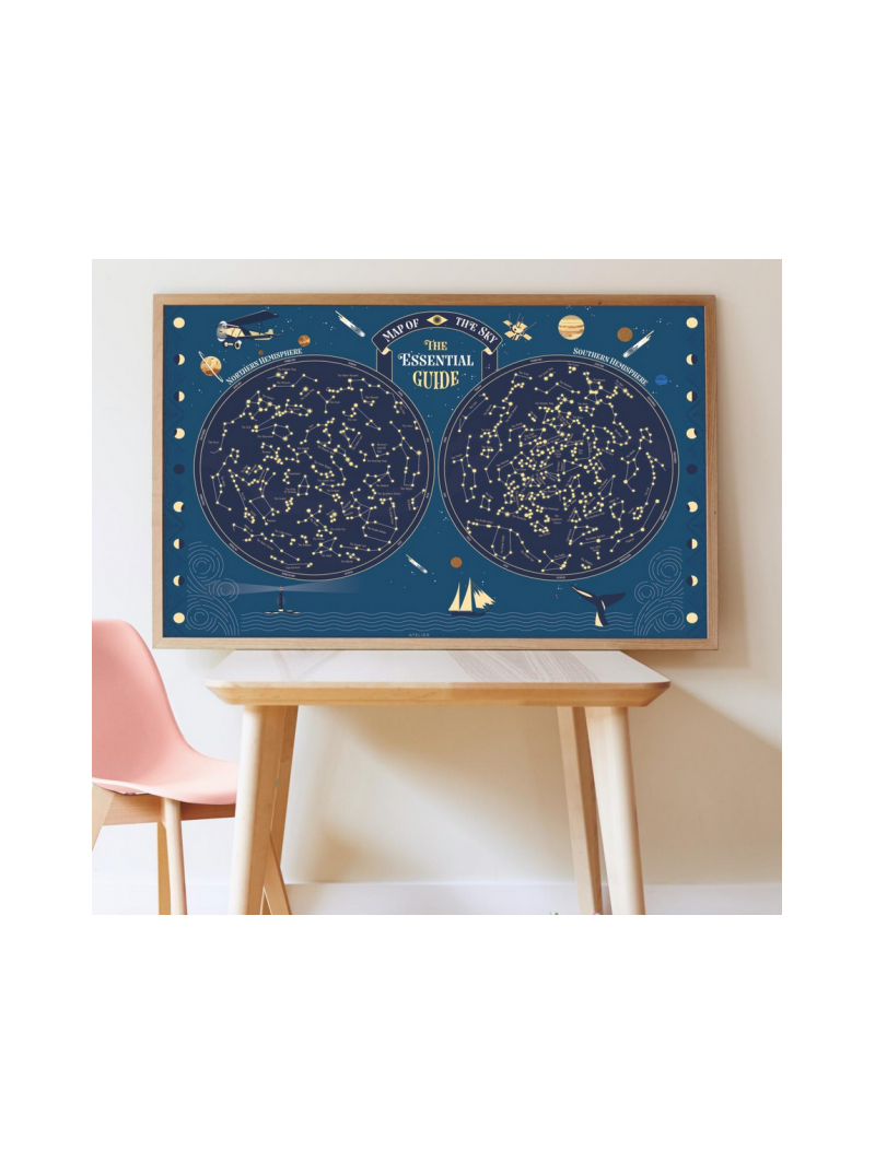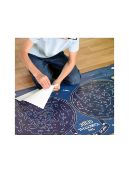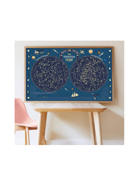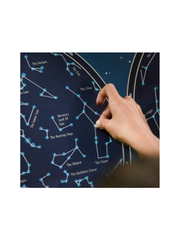 Voici une très belle carte du ciel phosphorescente à compléter avec des stickers repositionnables. L'enfant colle sur le poster plus de 600 stickers, sur les emplacements indiqués. Il mémorise ainsi le nom des constellations du ciel. Un magnifique poster pour enfants, pour apprendre en s'amusant.