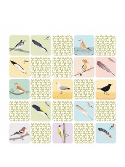 Après avoir décortiqué les 40 cartes du jeu, l'enfant peut s'amuser à rassembler les bonnes paires et à découvrir le nom et la forme des différents oiseaux et de leurs plumes. Une fois les cartes mélangées et retournées, la partie de mémory peut enfin démarrer !