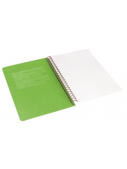 Carnet reliure intégrale à spirale format A5. Couverture en papier Maya ivoire teinté dans la masse et résistant à la lumière. Intercalaires en papier Maya et feuillets de papier Clairefontaine vélin velouté blanc 90g, certifié PEFC et fabriqué dans les Vosges par Clairefontaine.