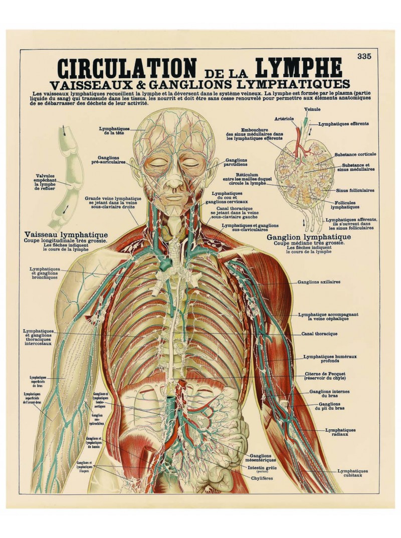 Planche n°335 : La circulation de la lymphe. Réédition d'une planche ancienne Deyrolle.