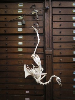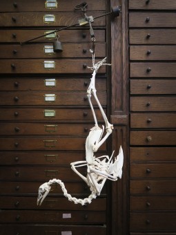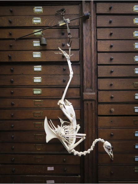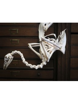 Rappelant l'une de ces natures mortes de l'école flamande par sa position expressive et asymétrique, suspendue à sa vielle balance de métal, ce squelette de dinde est un superbe exemple du pouvoir d'évocation que nous chérissons tant et recherchons pour les pièces de notre collection, chez Deyrolle.