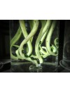 Son utilisation de cylindres de verre teintés dans la masse puis chauffés à de hautes températures lui permet de travailler ce matériau fragile et délicat avec la plus grande des libertés. S'inscrivant dans la lignée d'artistes verriers-scientifiques initié par les frères Blaschka en Allemagne au 19ème siècle, William Geffroy associe les codes de la collection muséale et scientifique à ceux des arts décoratifs.